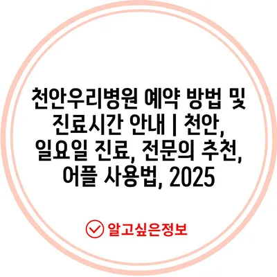 천안우리병원 예약 방법 및 진료시간 안내 | 천안, 일요일 진료, 전문의 추천, 어플 사용법, 2025