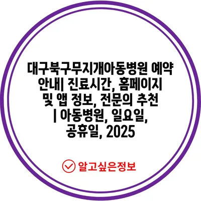 대구북구무지개아동병원 예약 안내| 진료시간, 홈페이지 및 앱 정보, 전문의 추천 | 아동병원, 일요일, 공휴일, 2025
