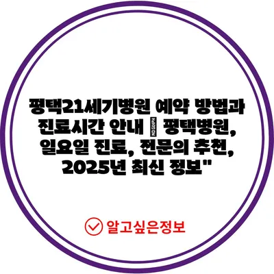 평택21세기병원 예약 방법과 진료시간 안내 | 평택병원, 일요일 진료, 전문의 추천, 2025년 최신 정보”