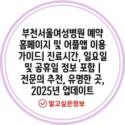 부천서울여성병원 예약 홈페이지 및 어플앱 이용 가이드| 진료시간, 일요일 및 공휴일 정보 포함 | 전문의 추천, 유명한 곳, 2025년 업데이트
