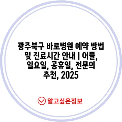 광주북구 바로병원 예약 방법 및 진료시간 안내 | 어플, 일요일, 공휴일, 전문의 추천, 2025