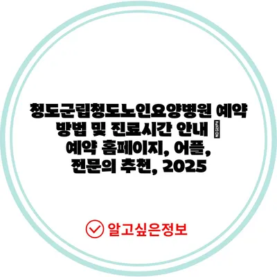 청도군립청도노인요양병원 예약 방법 및 진료시간 안내 | 예약 홈페이지, 어플, 전문의 추천, 2025
