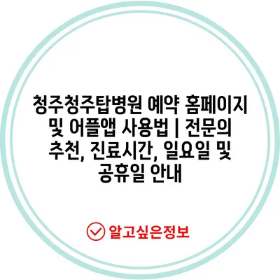 청주청주탑병원 예약 홈페이지 및 어플앱 사용법 | 전문의 추천, 진료시간, 일요일 및 공휴일 안내