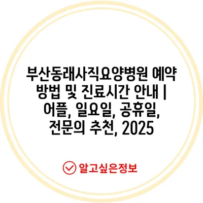 부산동래사직요양병원 예약 방법 및 진료시간 안내 | 어플, 일요일, 공휴일, 전문의 추천, 2025