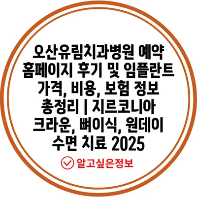 오산유림치과병원 예약 홈페이지 후기 및 임플란트 가격, 비용, 보험 정보 총정리 | 지르코니아 크라운, 뼈이식, 원데이 수면 치료 2025