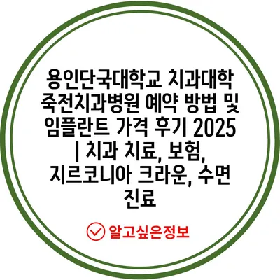 용인단국대학교 치과대학 죽전치과병원 예약 방법 및 임플란트 가격 후기 2025 | 치과 치료, 보험, 지르코니아 크라운, 수면 진료