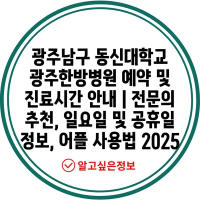 광주남구 동신대학교 광주한방병원 예약 및 진료시간 안내 | 전문의 추천, 일요일 및 공휴일 정보, 어플 사용법 2025