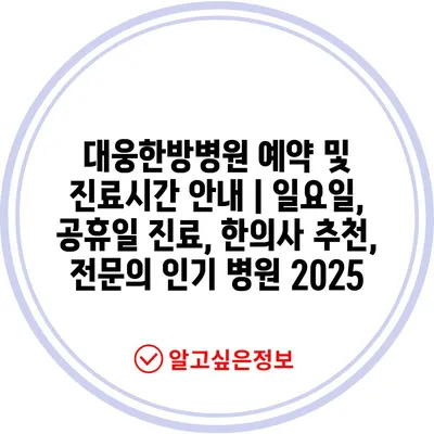 대웅한방병원 예약 및 진료시간 안내 | 일요일, 공휴일 진료, 한의사 추천, 전문의 인기 병원 2025