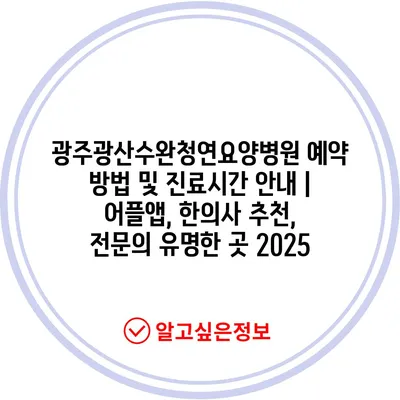 광주광산수완청연요양병원 예약 방법 및 진료시간 안내 | 어플앱, 한의사 추천, 전문의 유명한 곳 2025