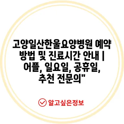 고양일산한울요양병원 예약 방법 및 진료시간 안내 | 어플, 일요일, 공휴일, 추천 전문의”