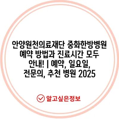 안양원천의료재단 중화한방병원 예약 방법과 진료시간 모두 안내! | 예약, 일요일, 전문의, 추천 병원 2025