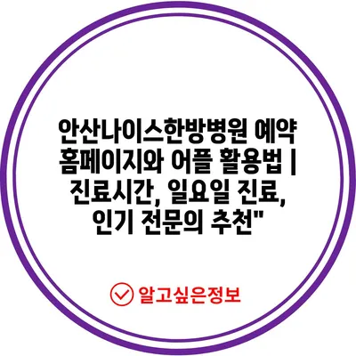 안산나이스한방병원 예약 홈페이지와 어플 활용법 | 진료시간, 일요일 진료, 인기 전문의 추천”