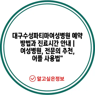 대구수성파티마여성병원 예약 방법과 진료시간 안내 | 여성병원, 전문의 추천, 어플 사용법”