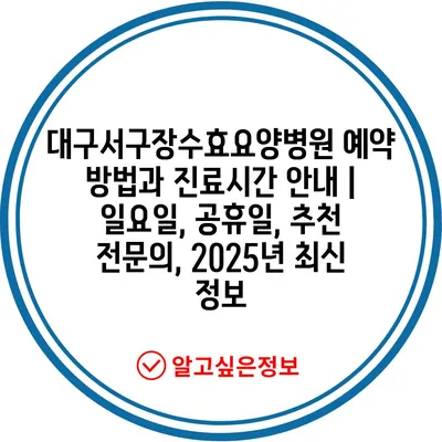 대구서구장수효요양병원 예약 방법과 진료시간 안내 | 일요일, 공휴일, 추천 전문의, 2025년 최신 정보