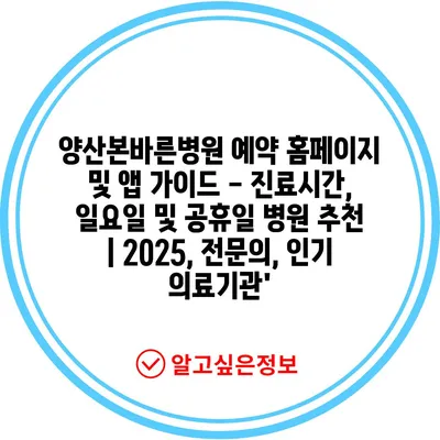 양산본바른병원 예약 홈페이지 및 앱 가이드 – 진료시간, 일요일 및 공휴일 병원 추천 | 2025, 전문의, 인기 의료기관’