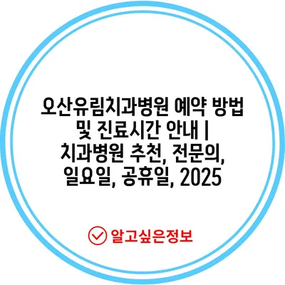 오산유림치과병원 예약 방법 및 진료시간 안내 | 치과병원 추천, 전문의, 일요일, 공휴일, 2025