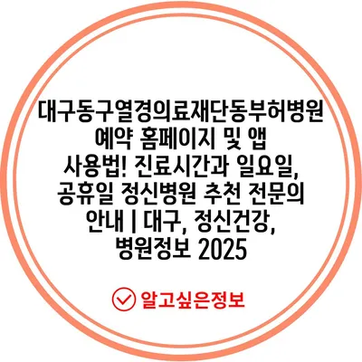 대구동구열경의료재단동부허병원 예약 홈페이지 및 앱 사용법! 진료시간과 일요일, 공휴일 정신병원 추천 전문의 안내 | 대구, 정신건강, 병원정보 2025