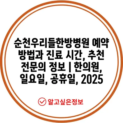 순천순천우리병원 예약 및 진료시간 안내 | 일요일, 공휴일, 전문의 추천, 유명한 곳 2025