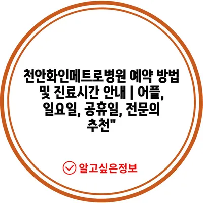 천안화인메트로병원 예약 방법 및 진료시간 안내 | 어플, 일요일, 공휴일, 전문의 추천”