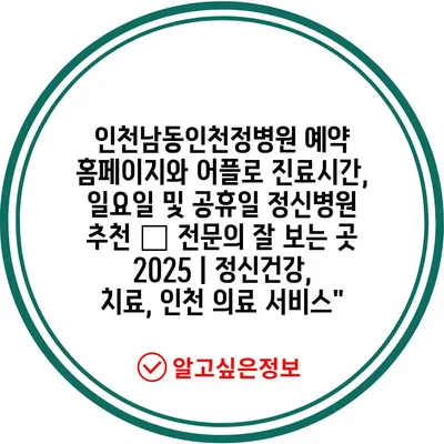인천남동인천정병원 예약 홈페이지와 어플로 진료시간, 일요일 및 공휴일 정신병원 추천 – 전문의 잘 보는 곳 2025 | 정신건강, 치료, 인천 의료 서비스”