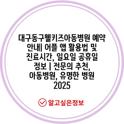 대구동구웰키즈아동병원 예약 안내| 어플 앱 활용법 및 진료시간, 일요일 공휴일 정보 | 전문의 추천, 아동병원, 유명한 병원 2025