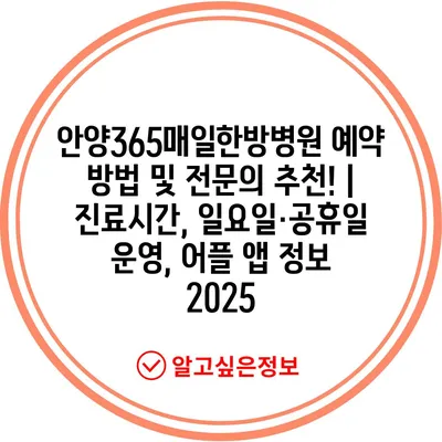 안양365매일한방병원 예약 방법 및 전문의 추천! | 진료시간, 일요일·공휴일 운영, 어플 앱 정보 2025