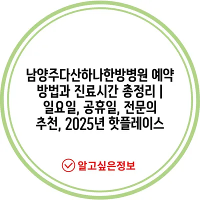 남양주다산하나한방병원 예약 방법과 진료시간 총정리 | 일요일, 공휴일, 전문의 추천, 2025년 핫플레이스