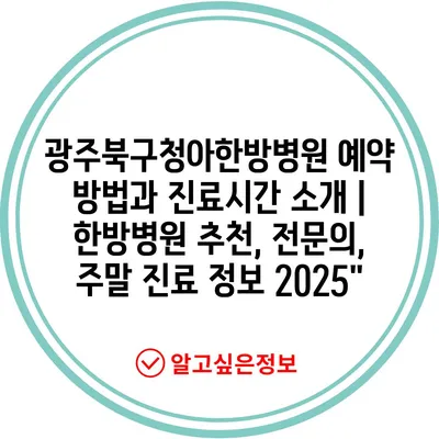 광주북구청아한방병원 예약 방법과 진료시간 소개 | 한방병원 추천, 전문의, 주말 진료 정보 2025″