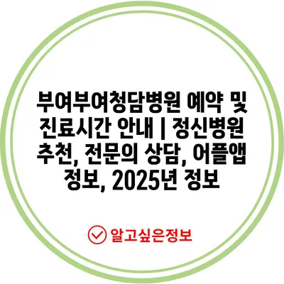 부여부여청담병원 예약 및 진료시간 안내 | 정신병원 추천, 전문의 상담, 어플앱 정보, 2025년 정보