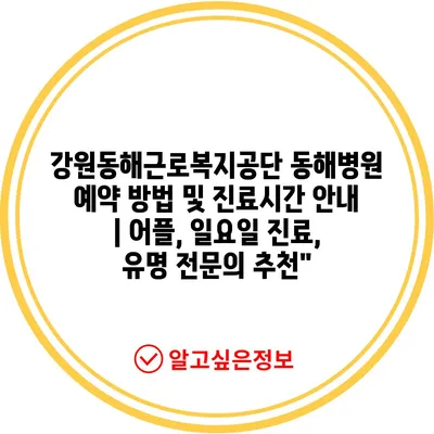 강원동해근로복지공단 동해병원 예약 방법 및 진료시간 안내 | 어플, 일요일 진료, 유명 전문의 추천”