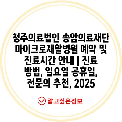 청주의료법인 송암의료재단 마이크로재활병원 예약 및 진료시간 안내 | 진료 방법, 일요일 공휴일, 전문의 추천, 2025