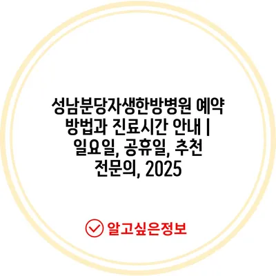 성남분당자생한방병원 예약 방법과 진료시간 안내 | 일요일, 공휴일, 추천 전문의, 2025
