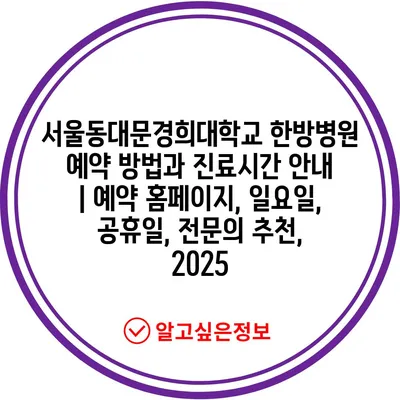 서울동대문경희대학교 한방병원 예약 방법과 진료시간 안내 | 예약 홈페이지, 일요일, 공휴일, 전문의 추천, 2025