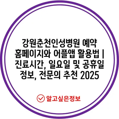 강원춘천인성병원 예약 홈페이지와 어플앱 활용법 | 진료시간, 일요일 및 공휴일 정보, 전문의 추천 2025