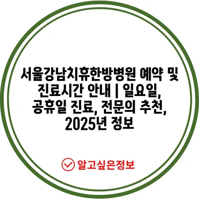 서울강남치휴한방병원 예약 및 진료시간 안내 | 일요일, 공휴일 진료, 전문의 추천, 2025년 정보