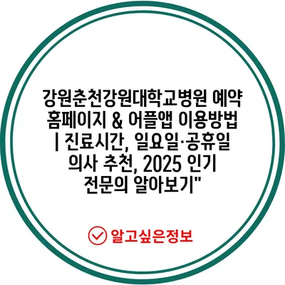 강원춘천강원대학교병원 예약 홈페이지 & 어플앱 이용방법 | 진료시간, 일요일·공휴일 의사 추천, 2025 인기 전문의 알아보기”