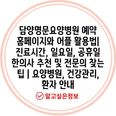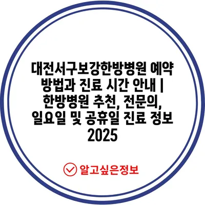 대전서구보강한방병원 예약 방법과 진료 시간 안내 | 한방병원 추천, 전문의, 일요일 및 공휴일 진료 정보 2025