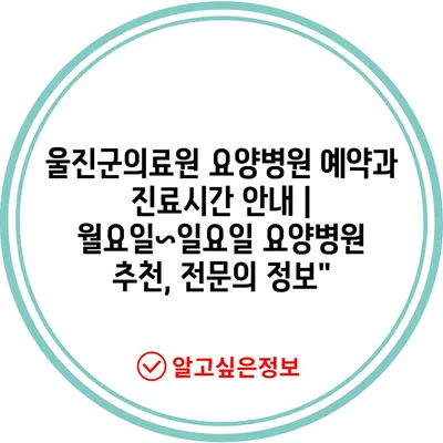 울진군의료원 요양병원 예약과 진료시간 안내 | 월요일~일요일 요양병원 추천, 전문의 정보”