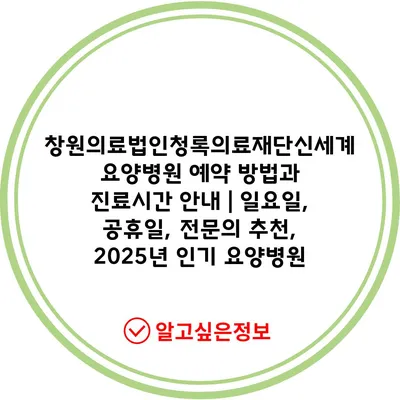 창원의료법인청록의료재단신세계요양병원 예약 방법과 진료시간 안내 | 일요일, 공휴일, 전문의 추천, 2025년 인기 요양병원