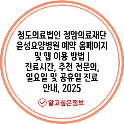 청도의료법인 정암의료재단 윤성요양병원 예약 홈페이지 및 앱 이용 방법 | 진료시간, 추천 전문의, 일요일 및 공휴일 진료 안내, 2025