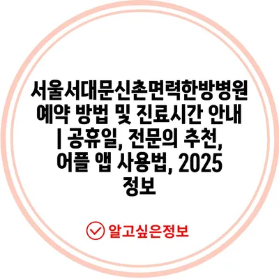 서울서대문신촌면력한방병원 예약 방법 및 진료시간 안내 | 공휴일, 전문의 추천, 어플 앱 사용법, 2025 정보