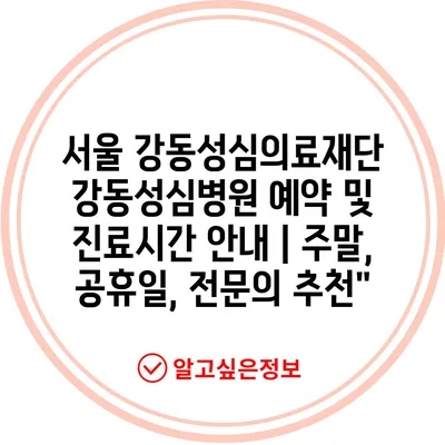 서울 강동성심의료재단 강동성심병원 예약 및 진료시간 안내 | 주말, 공휴일, 전문의 추천”