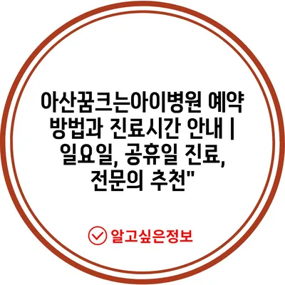 아산꿈크는아이병원 예약 방법과 진료시간 안내 | 일요일, 공휴일 진료, 전문의 추천”