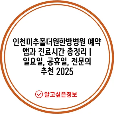 인천미추홀더원한방병원 예약 앱과 진료시간 총정리 | 일요일, 공휴일, 전문의 추천 2025