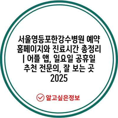 서울영등포한강수병원 예약 홈페이지와 진료시간 총정리 | 어플 앱, 일요일 공휴일 추천 전문의, 잘 보는 곳 2025