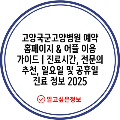 고양국군고양병원 예약 홈페이지 & 어플 이용 가이드 | 진료시간, 전문의 추천, 일요일 및 공휴일 진료 정보 2025