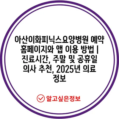 아산이화피닉스요양병원 예약 홈페이지와 앱 이용 방법 | 진료시간, 주말 및 공휴일 의사 추천, 2025년 의료 정보