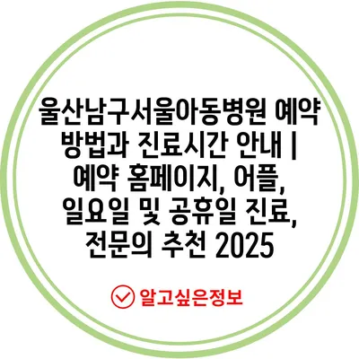 울산남구서울아동병원 예약 방법과 진료시간 안내 | 예약 홈페이지, 어플, 일요일 및 공휴일 진료, 전문의 추천 2025