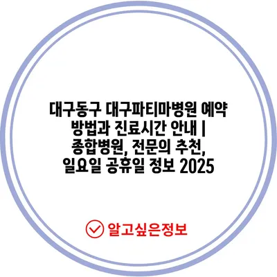 대구동구 대구파티마병원 예약 방법과 진료시간 안내 | 종합병원, 전문의 추천, 일요일 공휴일 정보 2025