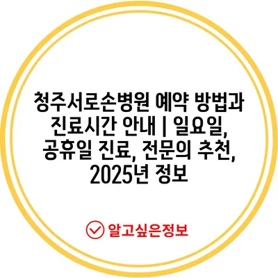 청주서로손병원 예약 방법과 진료시간 안내 | 일요일, 공휴일 진료, 전문의 추천, 2025년 정보